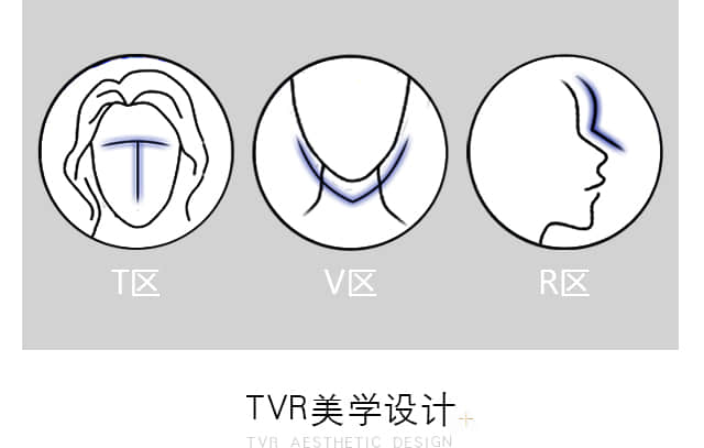 以TVR黄金比例为标准,综合考虑塑造协调的面容,打造面部黄金三角“TVR”。
