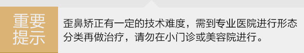 采取鼻中隔矫正术,切除突出部分的鼻骨和鼻软骨,通过重置骨骼,鼻孔矫正等综合整形术,使鼻部外观得到改善,并有效防止歪鼻的复发。